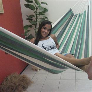 Grønstribet hængekøje i stof fra Brasilien