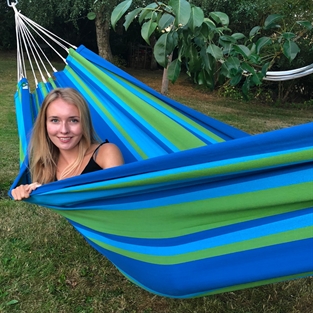 Vejrbestandig Frisk hængekøje i turkis, blå og grøn.