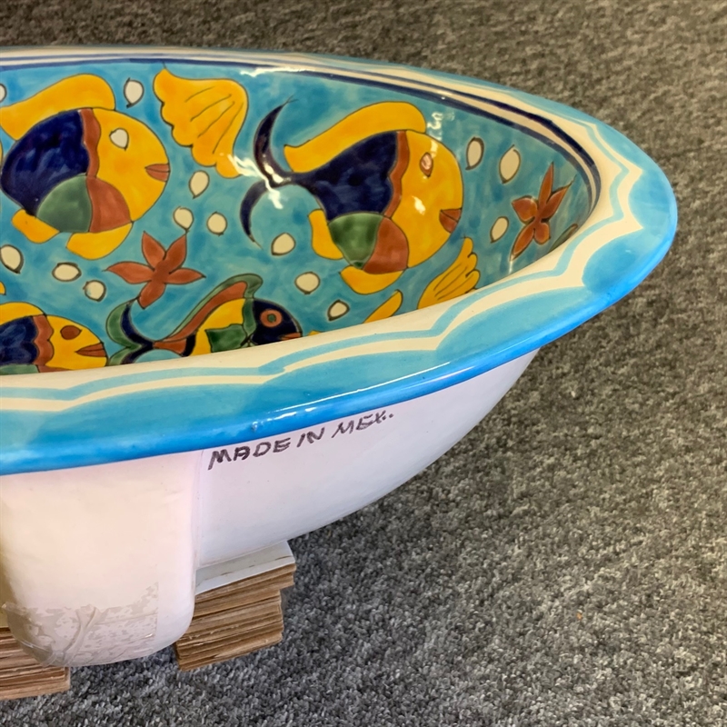 BIG Fiskestime håndvask - Stor mexicansk håndmalet vask BIG