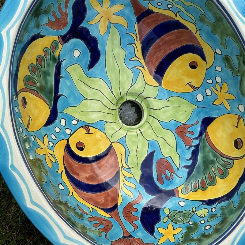 BIG Mexico Håndvask med dekorative fisk. Den unikke og efterspurgte keramiske mexikanske håndvask