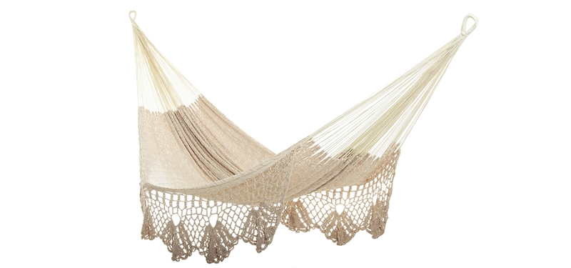 Hængekøje Mayan Deluxe i bomuldsnet med pynt