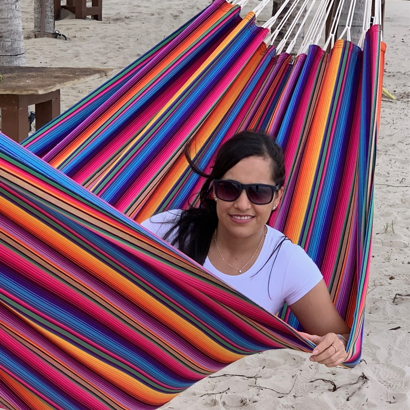 Masser af god plads i hængekøjen, og her kan du virkelig mærke at der er god bredde i en hængekøje. Optimal komfort og smidighed en rigtig luksus hængekøje. - Det tager faktisk 2 uger at håndvæve en sådan hængekøje i Mexico. Så nyd den ekstreme lækre komfort. Det er bedre end du tror.