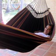 Ekstra stor stof-hængekøje med charmerende gyldne border. Et rigtig brasiliansk look.